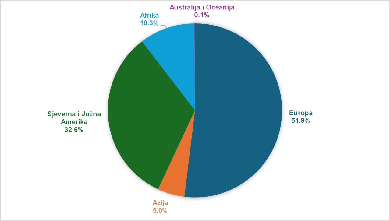Slika 1. Struktura izvoza cvijeća po kontinentima u 2024. godini