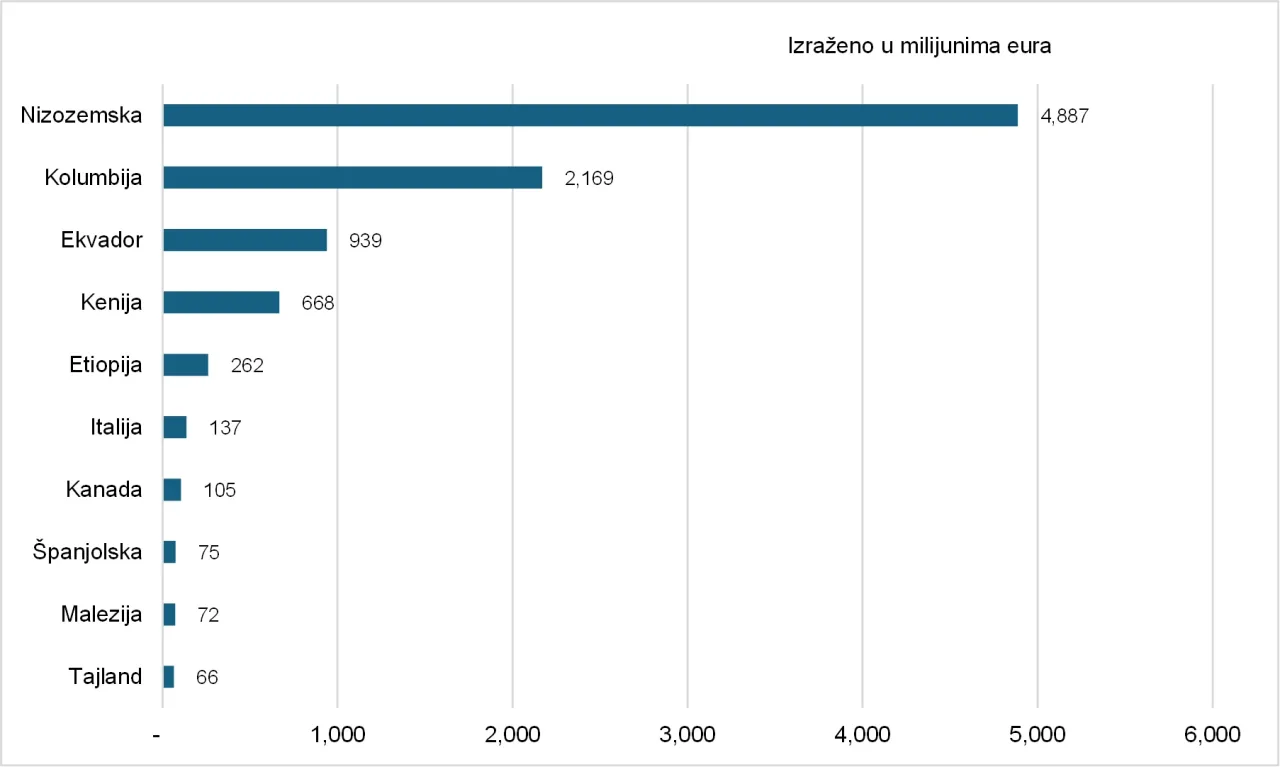 Slika 2. Najveći izvoznici cvijeća u svijetu u 2024. godini
