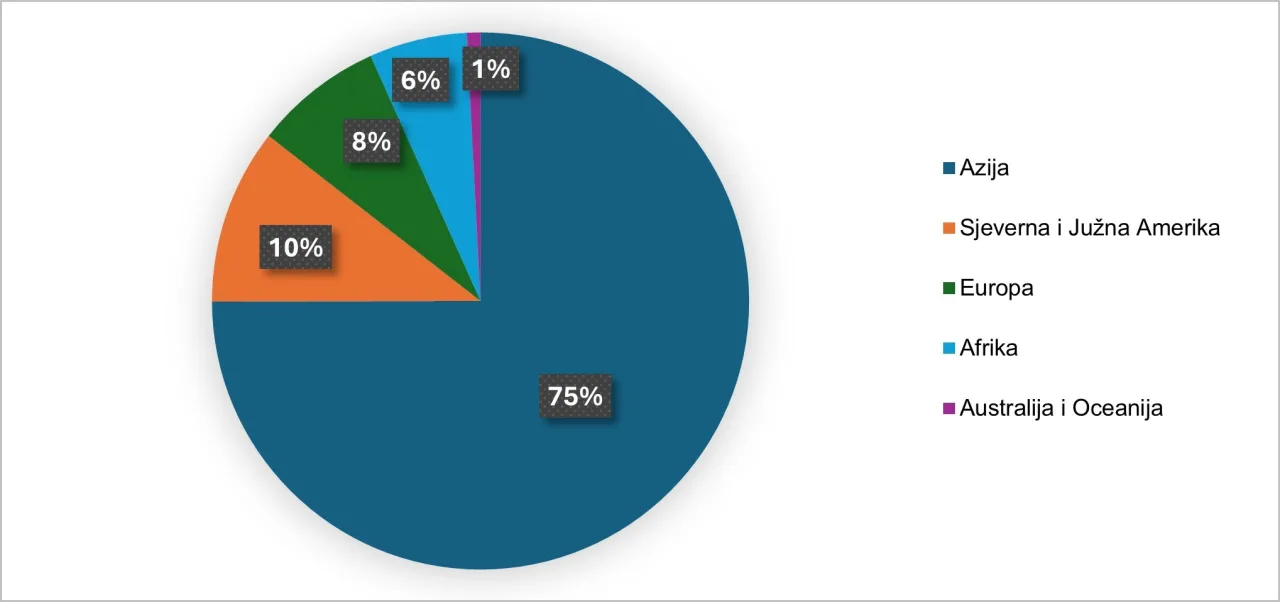 Slika 2. Najveći proizvođači plodova mora po kontinentima u 2022. godini