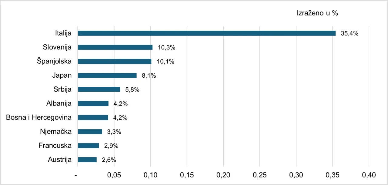 Slika 6. Izvoz plodova mora Republike Hrvatske po zemljama u 2024. godini