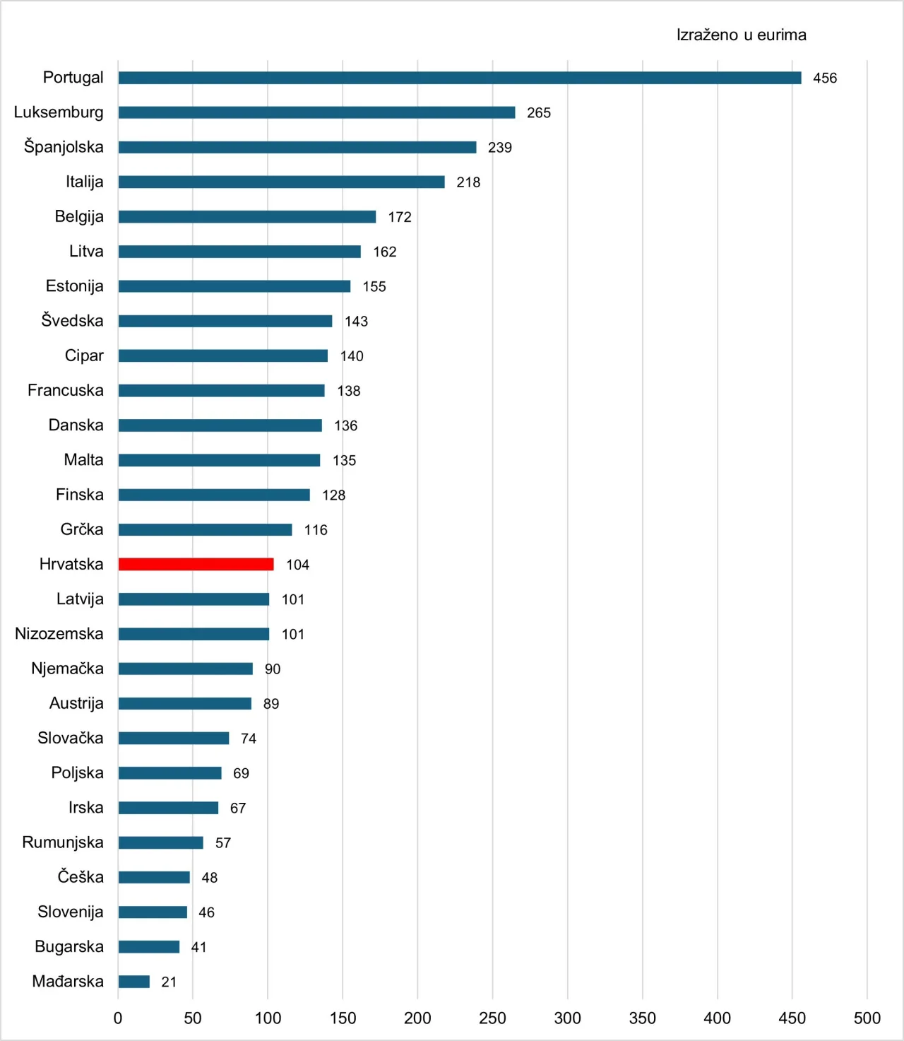 Slika 8. Izvoz plodova mora zemalja Europske unije po stanovniku u 2024. godini