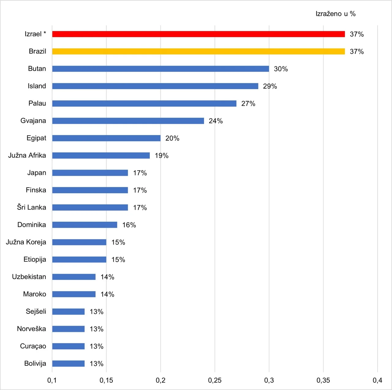 Slika 2. Top 20 zemalja u svijetu prema godišnjem rastu broja dolazaka turista u 2025. godini