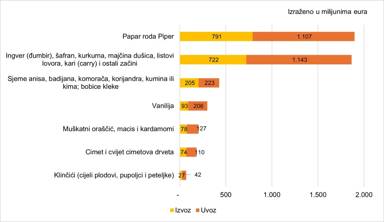 Slika 7. Trgovina Europske unije začinima u 2024. godini prema vrstama začina