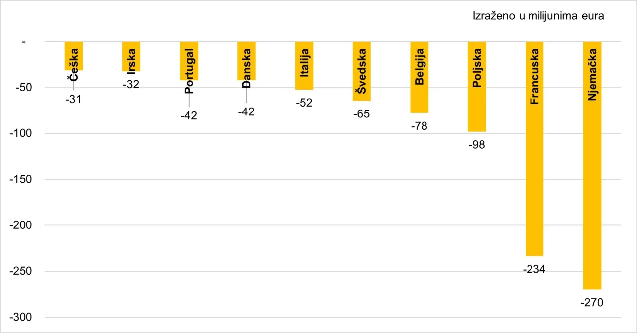 Slika 8. Zemlje Europske unije s najvećim deficitom u trgovini začinima u 2024. godini
